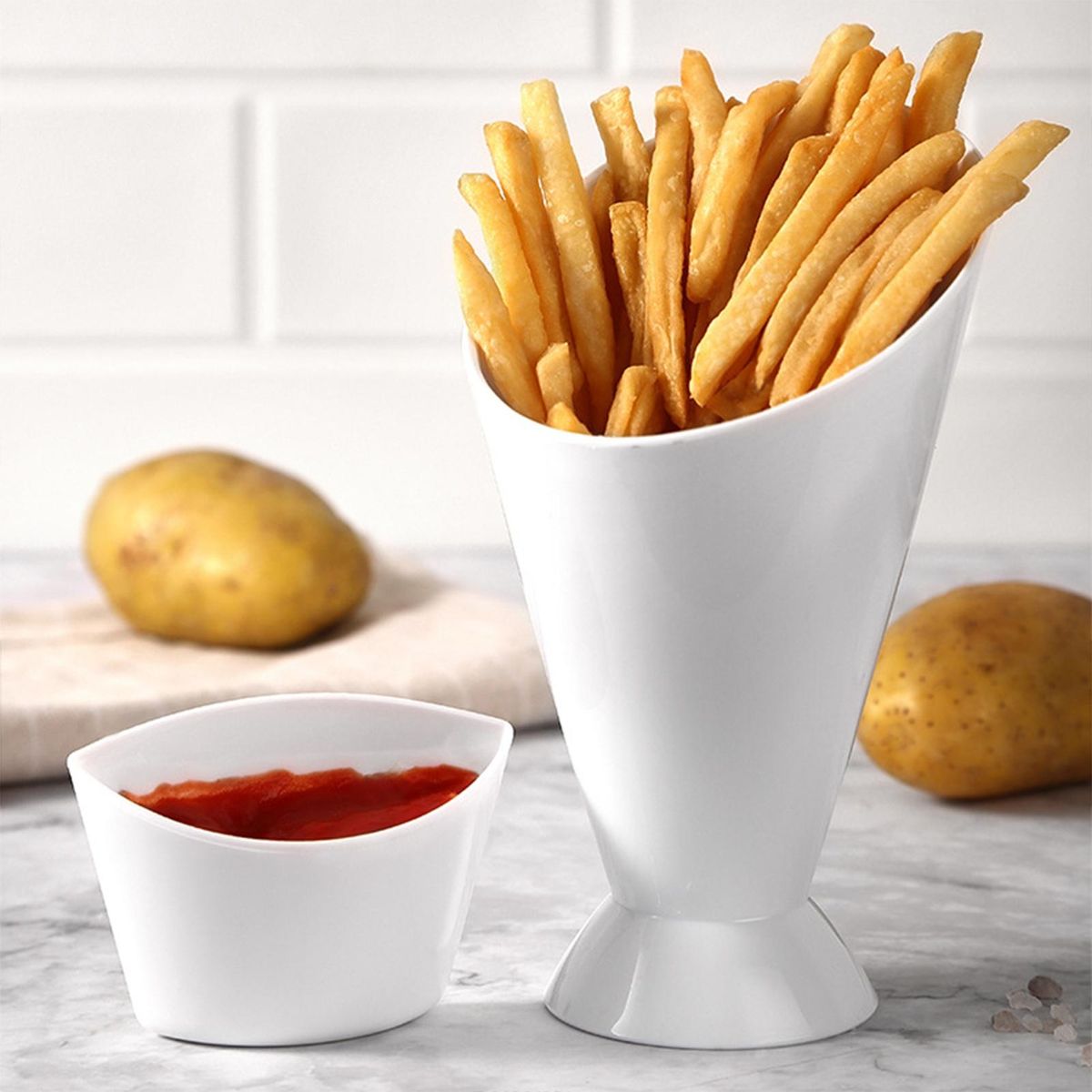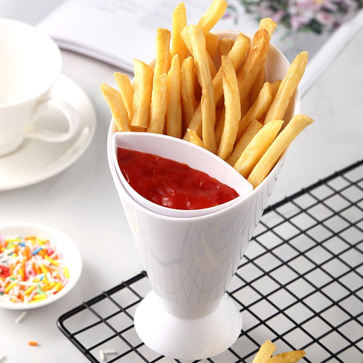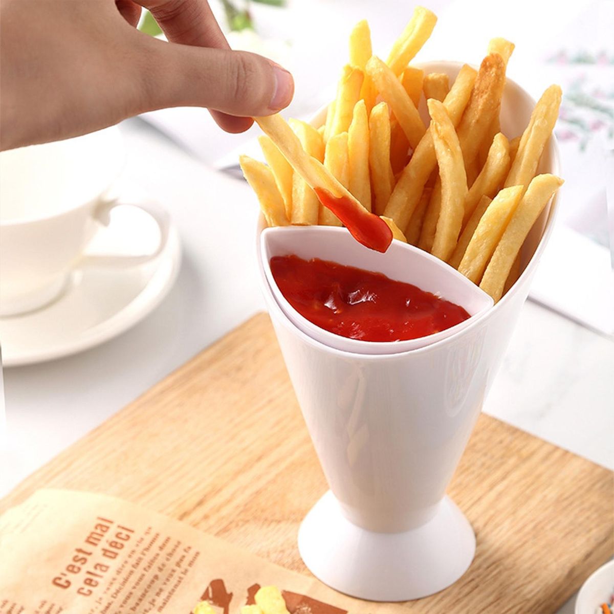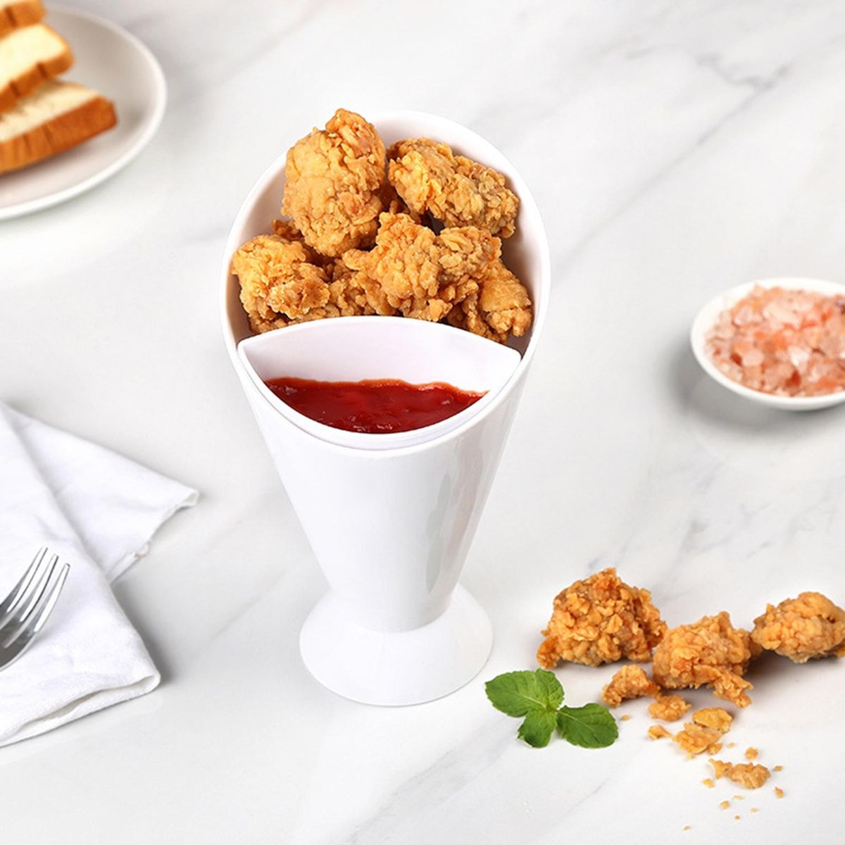 2 in 1 design of sauce dish and snack cup make you to dip in tomato sauce easily when eating french fries, and no extra sauce dish required. You can also use it for serving ice cream, fruit salad, yogurt, pudding, parfaits, mashed potatoes and so on.