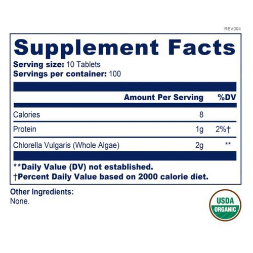 Pure BioPure Chlorella Vulgaris offered in tablet form. This form is convenient and easy to take daily. Chewing Chlorella has shown to be good for gums, teeth and oral hygiene, and allows digestion to begin in the mouth.* 1000 tablets per bottle.