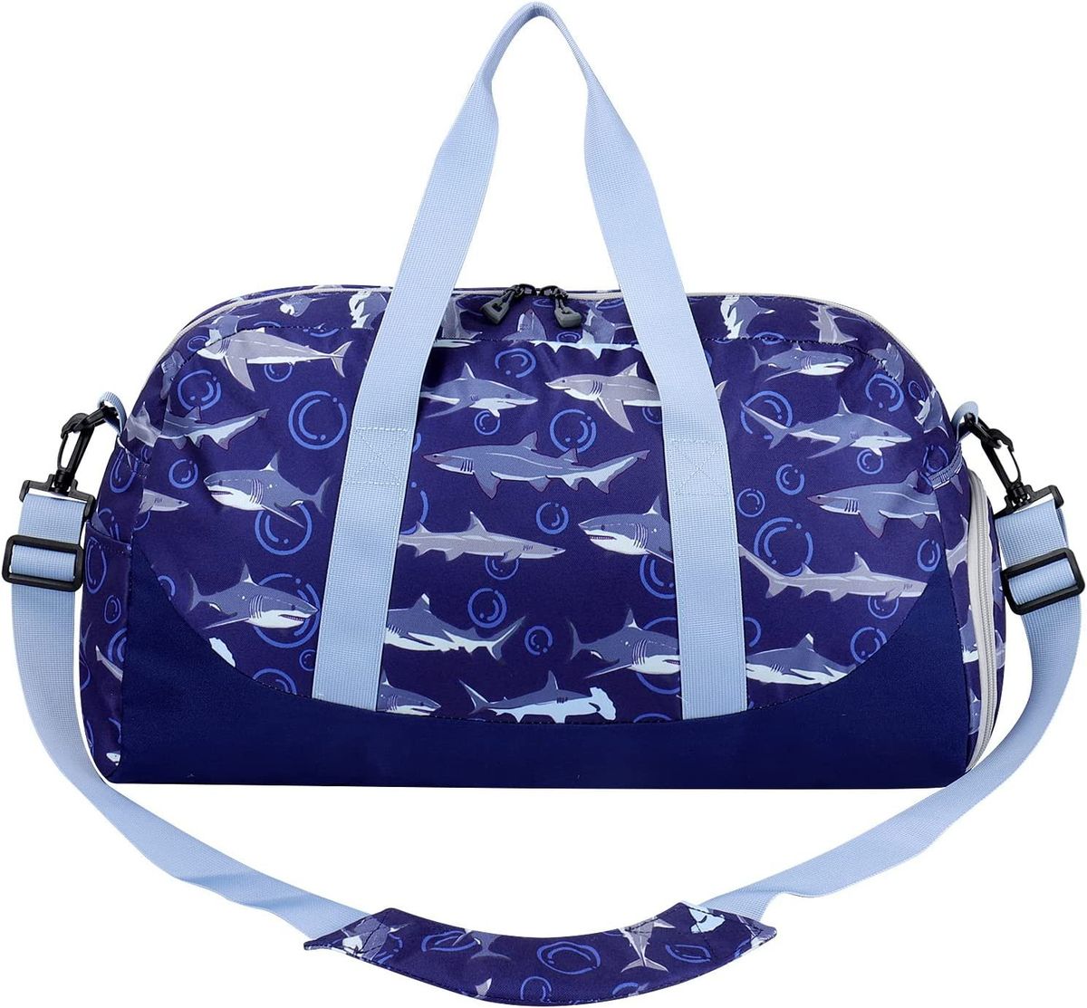 - ♥Choco Mocha shark duffle bag for boys, with ultra-versatile pockets, perfect gift as a dance, overnight, traveling, weekend, vacation, sport, gym, sleepover, gymnastics, activity, airplane, camp, carry on bag for kids on Birthday, Christmas, New Year
