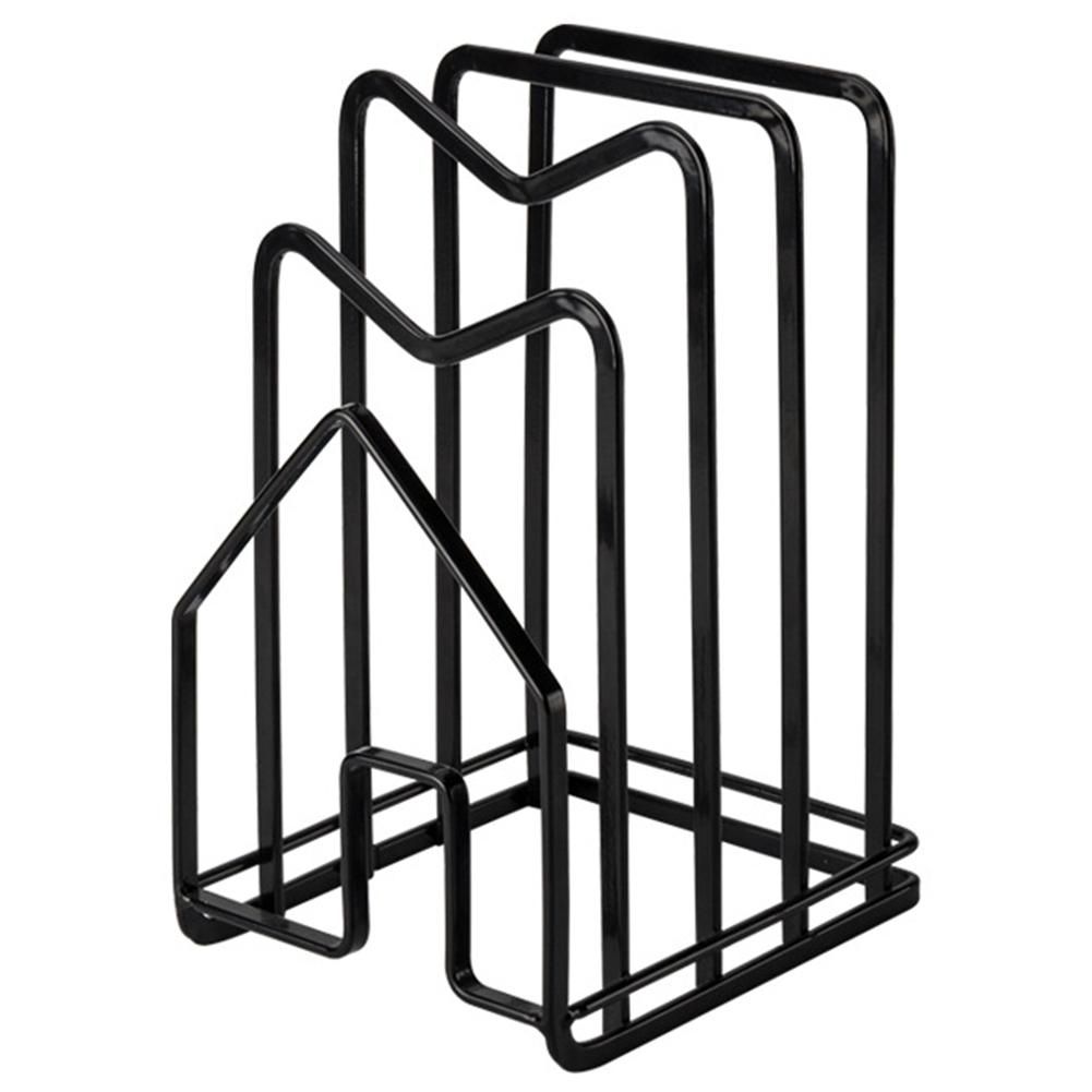 Great pan organizer to save cabinet and countertop space, stores up to 4 pans