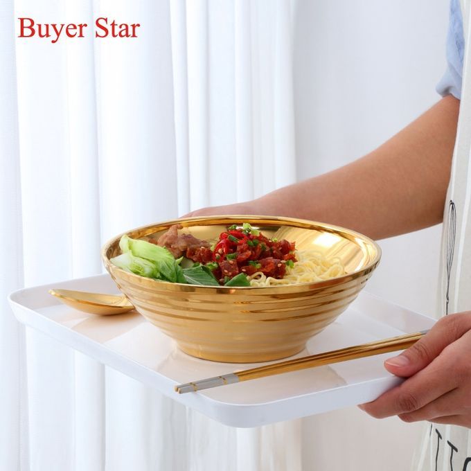 Ramen Bowls with chopsticks Tableware Stainless Steel Bowl instant noodle Bowl Metal Soup Bowl for dining table wareInclude :1pcs Stainless steel bowl or 1 pair of chopsticks Size:18cm*6.3cm thickness :0.4cm Beautiful color ,make the eating time more enjoyable The design of the Double Layer makes the bowl heat-proof and hot-proof. 304 Food grade Stainless steel .safe the life Wave wall design ,Non-slip Instructions: 1.For the first time use,please placed in boiling water to boil and use detergent to clean.It can make the dirt has been removed in the process of transportation. 2.After each use, please use the clean, such as cotton cloth do not swab with wire, in order to avoid scratching the mirror, and placed in dry ventilated place. "Shipping and Packaging All items will be double checked and well packed before sending.Items will be dispatched within 2 business days after buyers pay for the order. It usually takes about 14 to 18 working days for delivering the package to the destination(for remote areas,it may take a little longer). Special Announcement:Please fill in the correct and detailed consignee, address and phone number in the order. For fast and correct delivery.If you do not receive order within 30 working days,please feel free to contact Customer Service before leaving Negative and Neutral Feedback, we will do our best to help you resolve the problem.TaxNo, you will only pay what is quoted as total cost at checkout, no more. You are not expected to pay any additional duties or taxes. If you are asked by Customs or our logistic partner to pay duties, please contact our Customer Service .ReturnIf the product is not on good condition, You can return this product within 14 working days, please contact customer service center before returning.FeedbackYour satisfaction is our first priorityIf you receive the order and it is in good condition,we would be grateful if you would leave us 5 star Positive Feedback for the transaction.