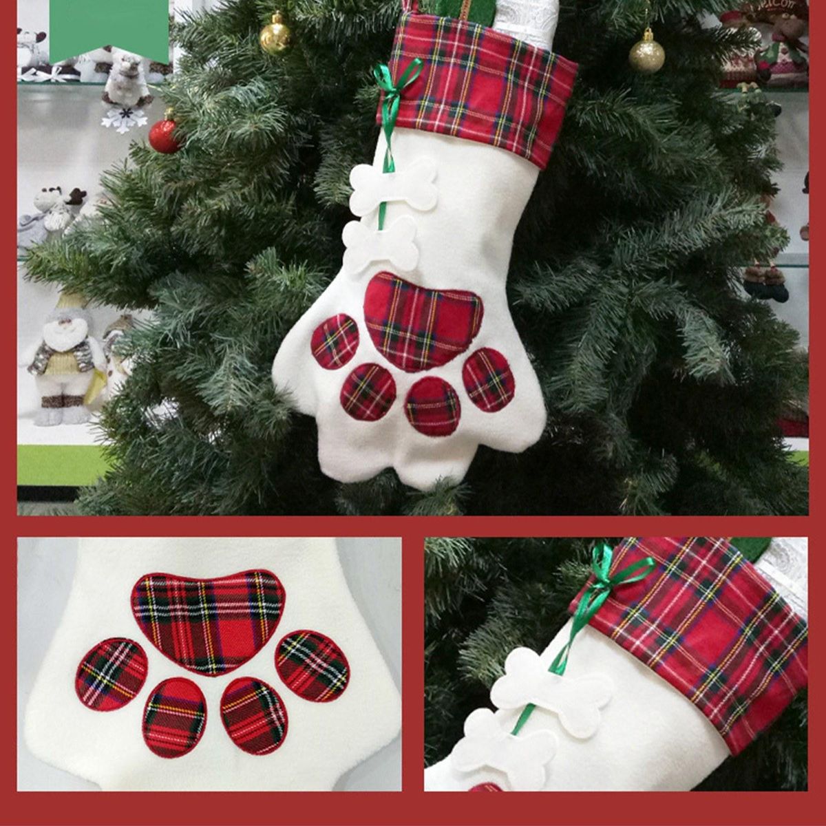 Buy Christmas Candy Stocking Pet Paw Pattern Reusable Tote Bags Gift Tote Bag Happy Hanging Socks for Holiday and Christmas Decorations in Nigeria