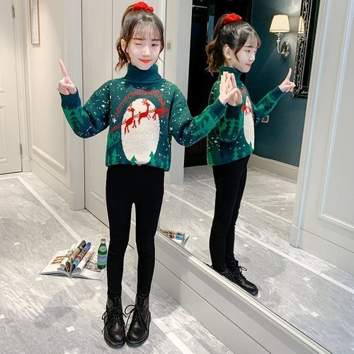 Christmas Children Pullover Knit Bottoming Shirt (Color:Green Size:150)