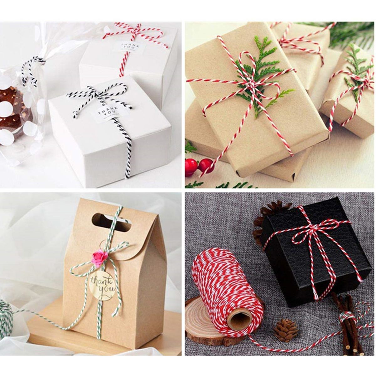 Material: This red and white bakers twine is made of 100% Natural cotton, strong and eco-friendly.