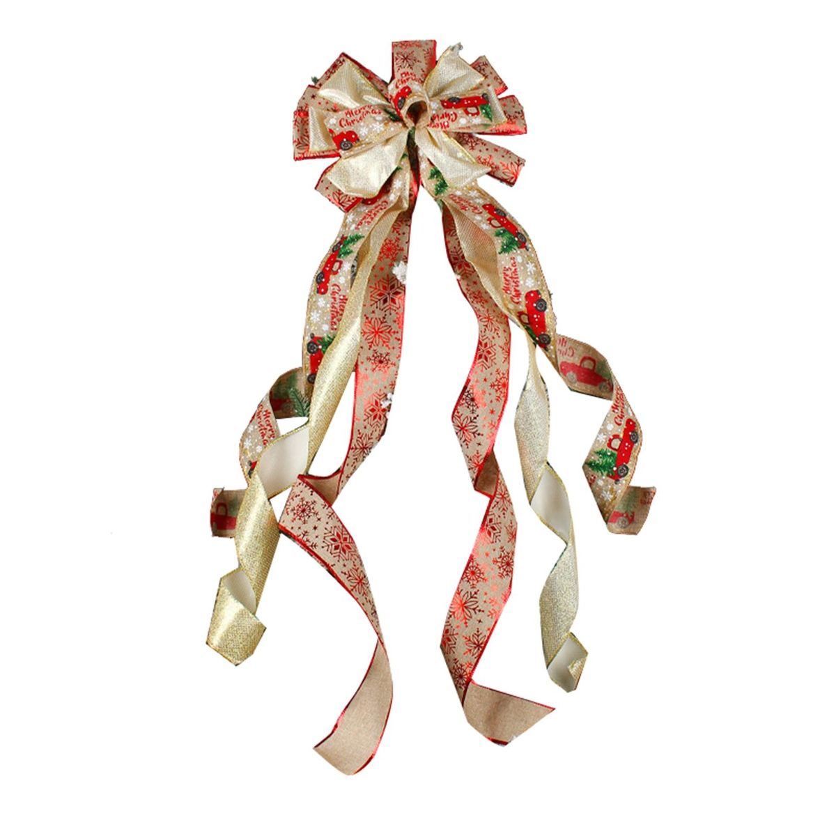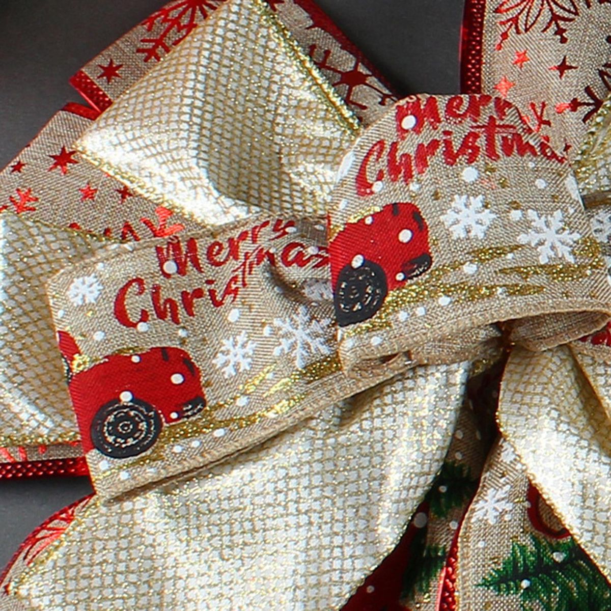 This Christmas bow fine workmanship, attention to detail, ribbon using printed pattern design can be perfectly matched with the Christmas tree.