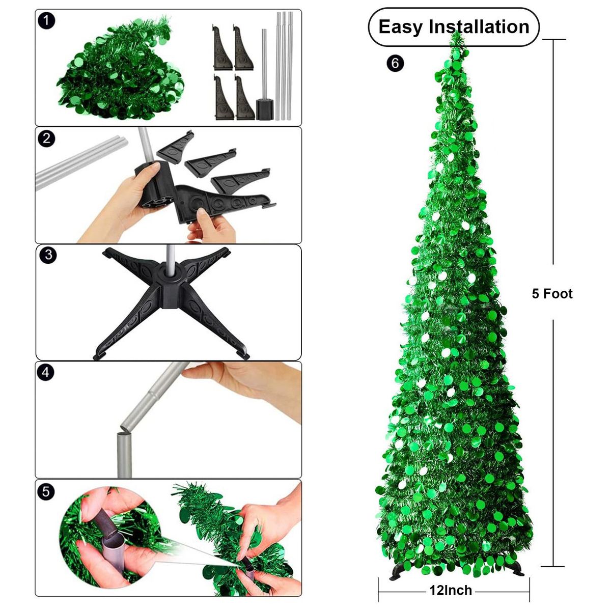 Buy Christmas Decorating Product Collapsible Folding Christmas Ornamental Tree 1.5 Meters with Stand Sequin Pencil Tree for Apartment Home Store Holiday in Nigeria