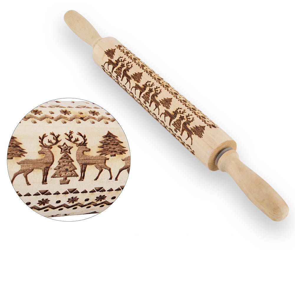 Christmas style deer and snowflake engraved pattern on the rolling pin.