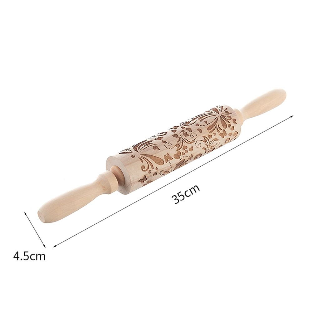 Christmas Flower Engraved Wooden Dough Rolling Pin