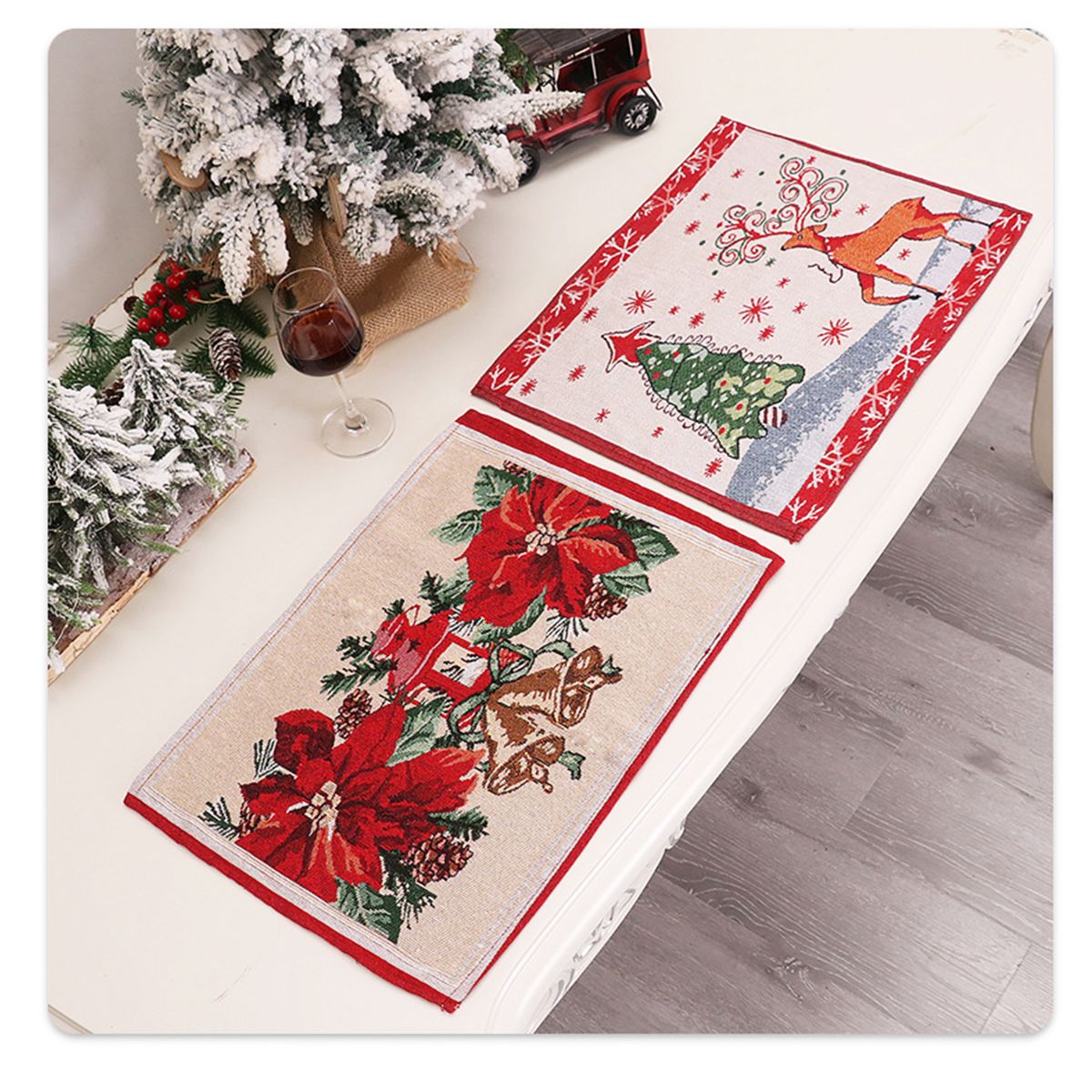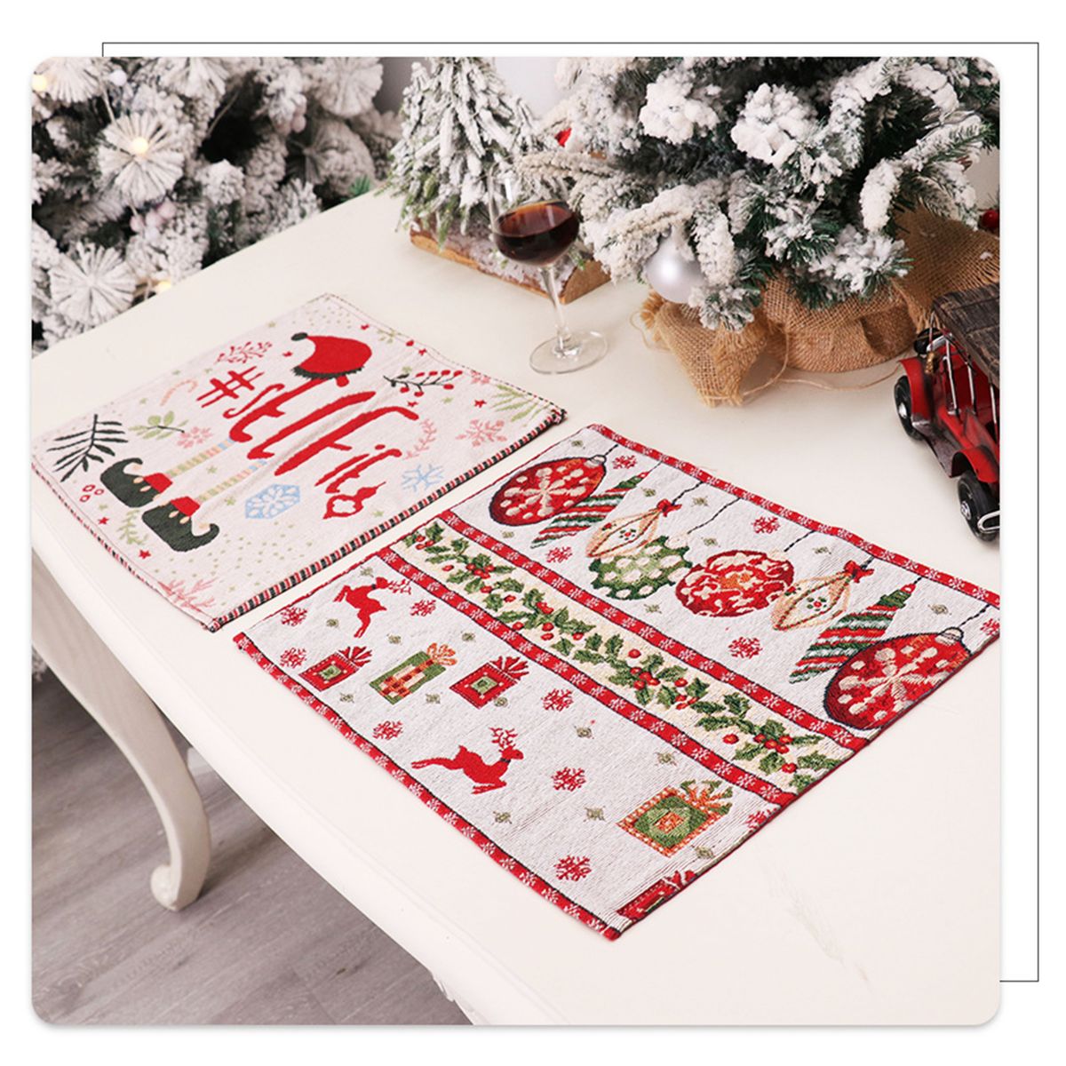 1. The placemats are printed with a Christmas theme pattern to meet the needs of you and your family to decorate the table.