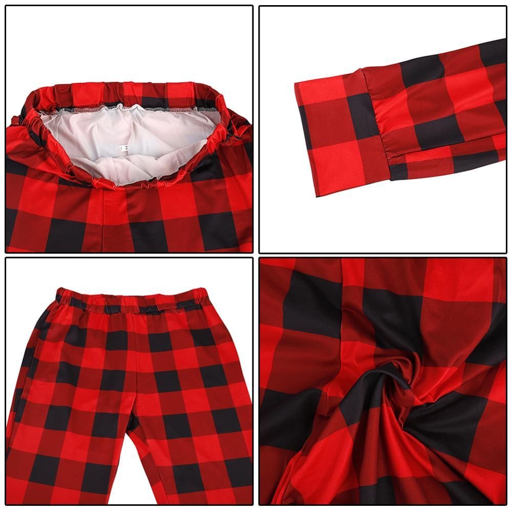 1X Traje de Navidad con letras impresas camisa de manga larga pantalones largos a cuadros pijama informal para mujer traje de servicio para el hogar conjunto de dos piezas