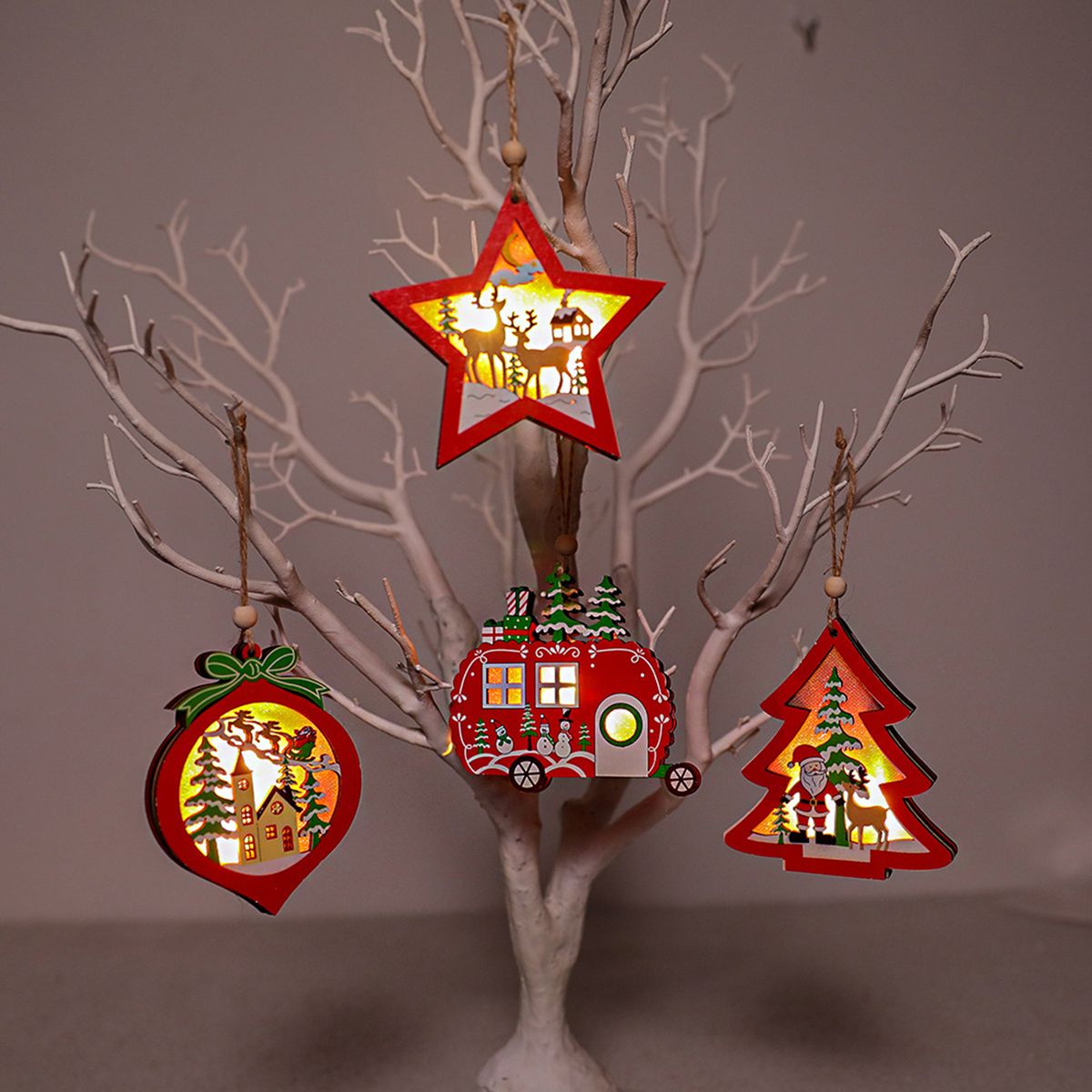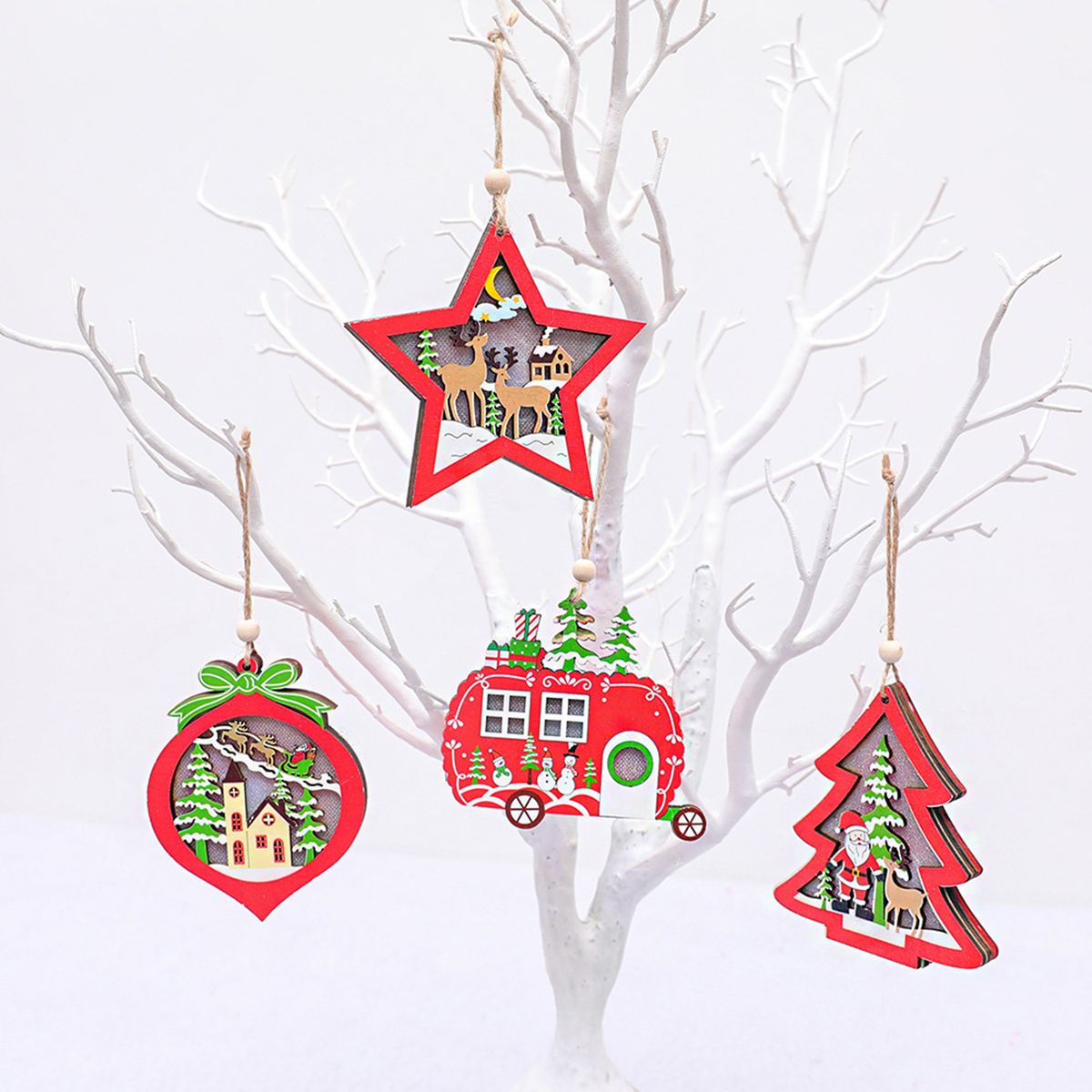 Each decor comes with a rope for easy to hang and display on Christmas trees, doors or windows etc.