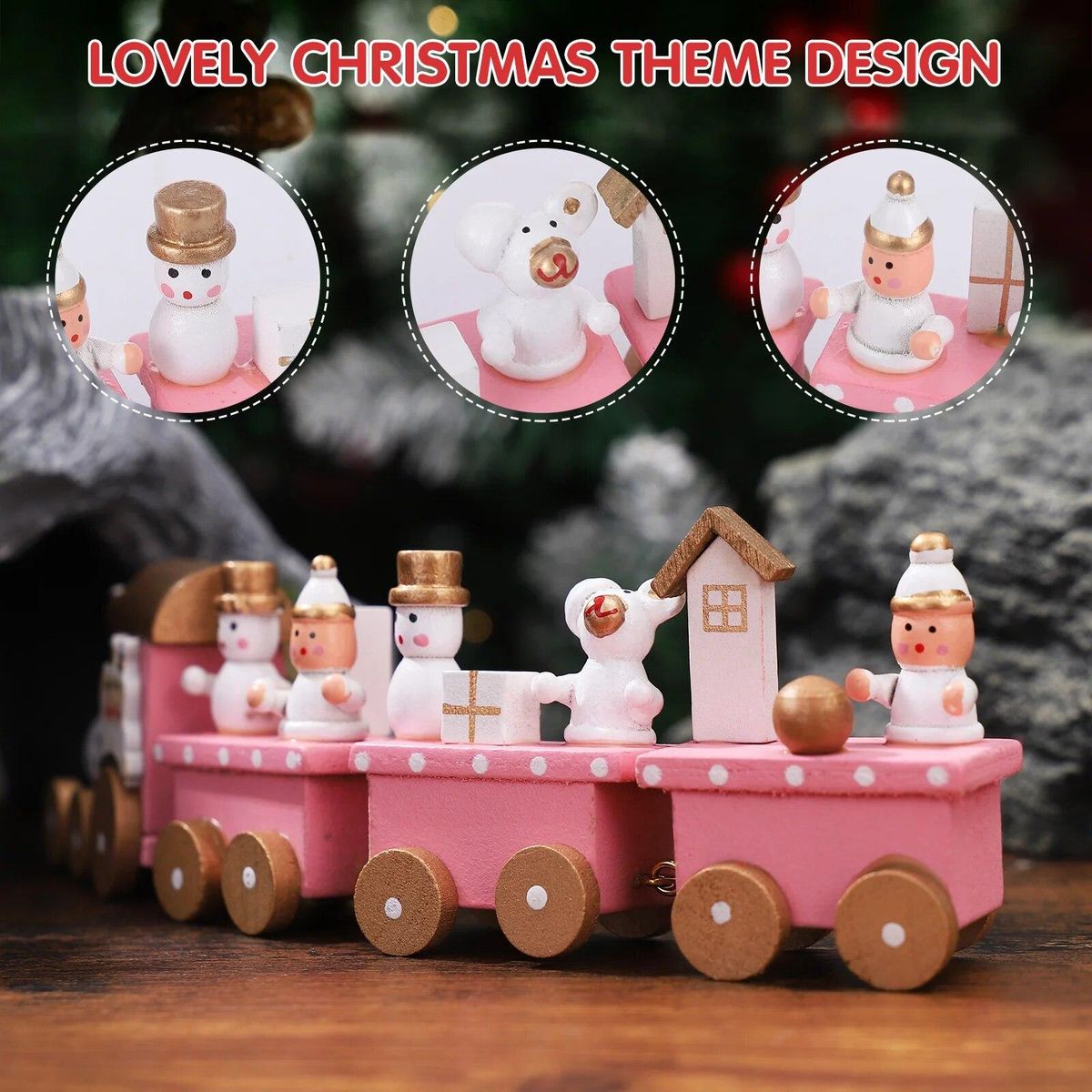 Buy Christmas Wooden Train Ornament with Snowman and Bear Train Rail Set for Kids Christmas Party Kindergarten Decoration, in Nigeria