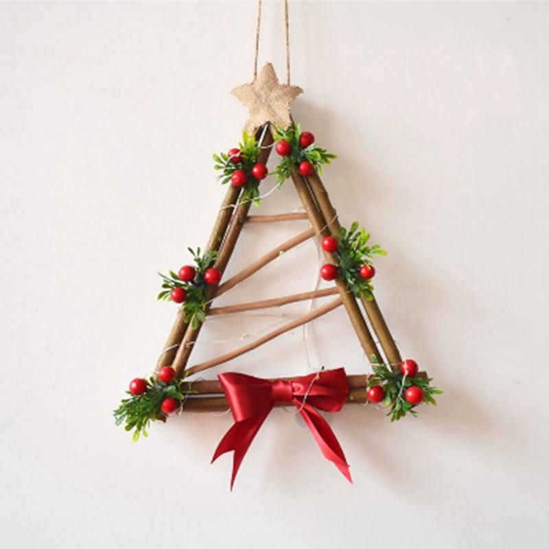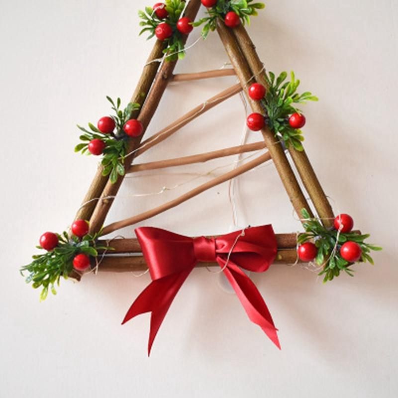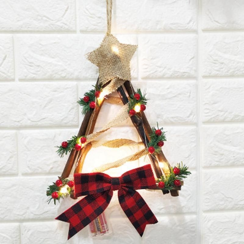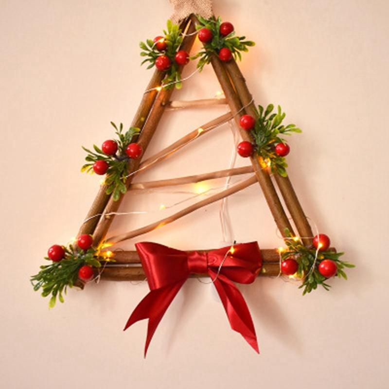 High Performance: Trimmed with hats, bow ties, pine cones and red berries, the triangular rattan matches the lamp light is purple and the shape is warm white Workmanship: Easy to set up and durable: with burlap rope bundling, the wreath will not fall apart easily, up the board with steel wire, keeps it more stable