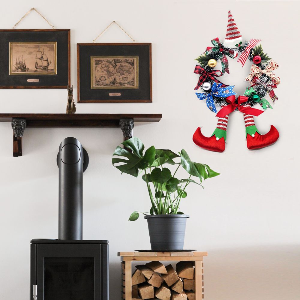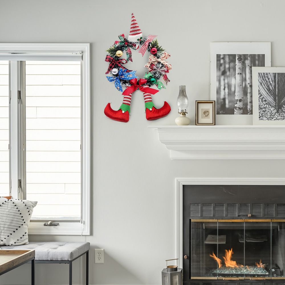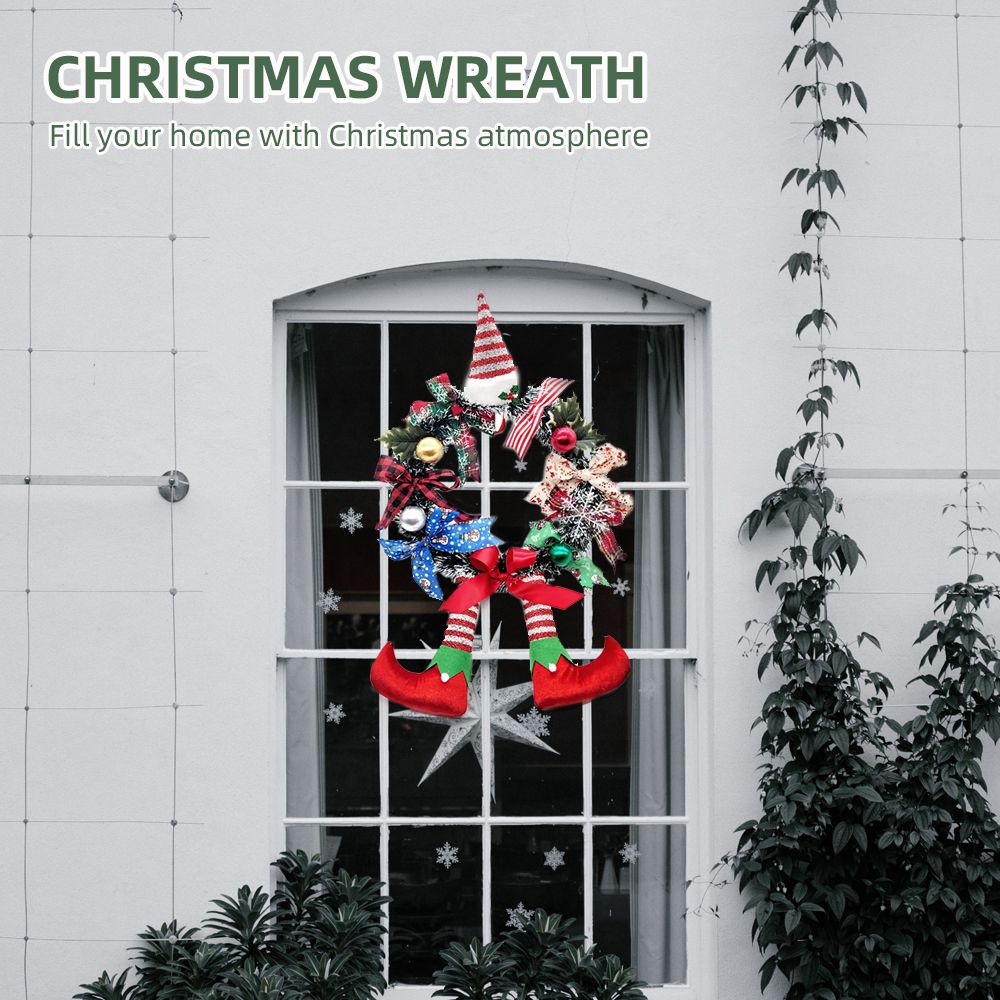 HIDEN CLOWN CHARACTER: This Christmas wreath for front door outside creatively adds a Santa hat, and hangs a pair of clown legs below, very cute and interesting, and full of Christmas atmosphere. Perfect for hanging in front of a door or anywhere else.