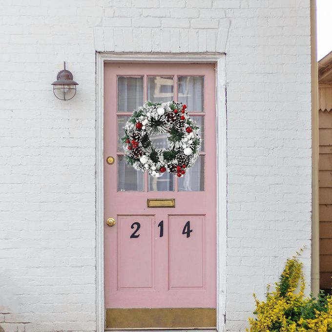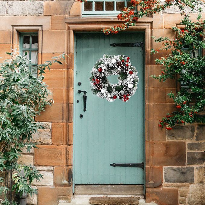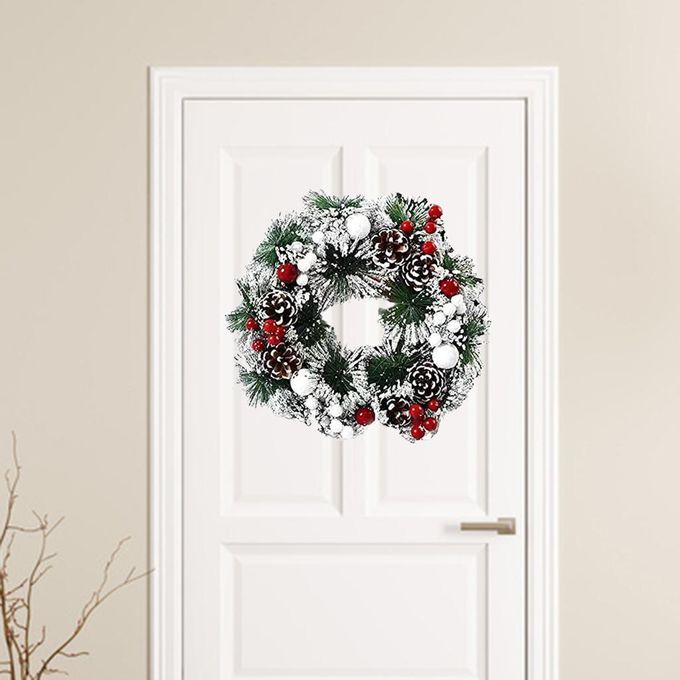 Add charm to your Christmas holiday with this eye-catching green wreath. Use this wonderful winter or fall front door wreath for festive fall, winter, and Christmas decorations in your home or covered outdoor locations.