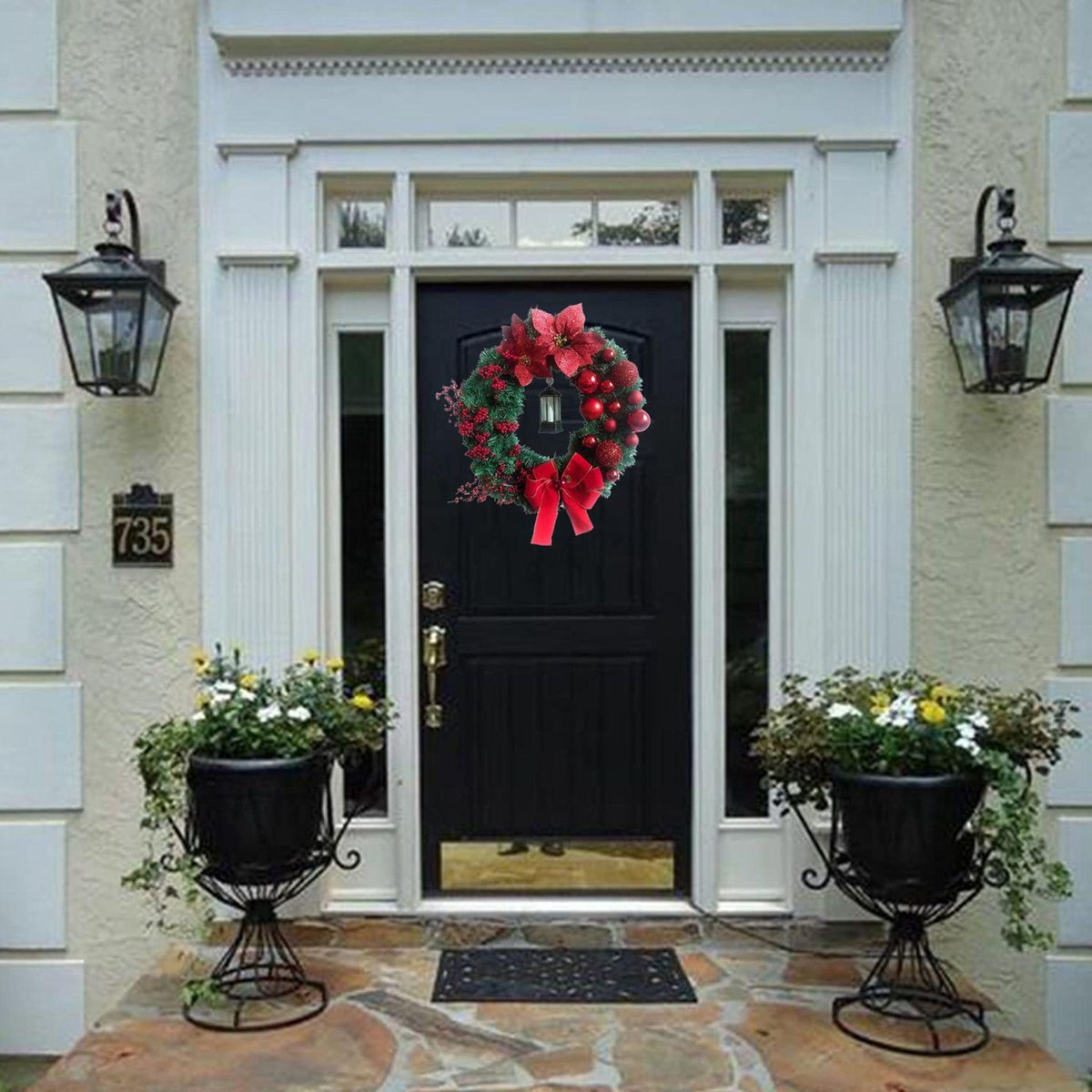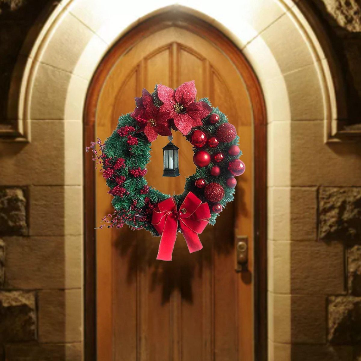 3.Display this decorative wreath outside all day long with no worry about the changing weather conditions.