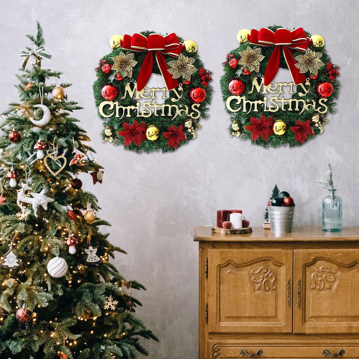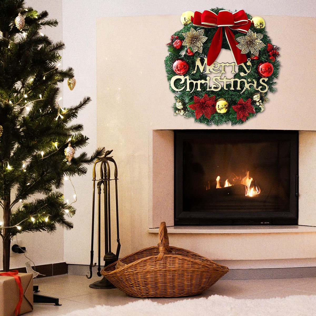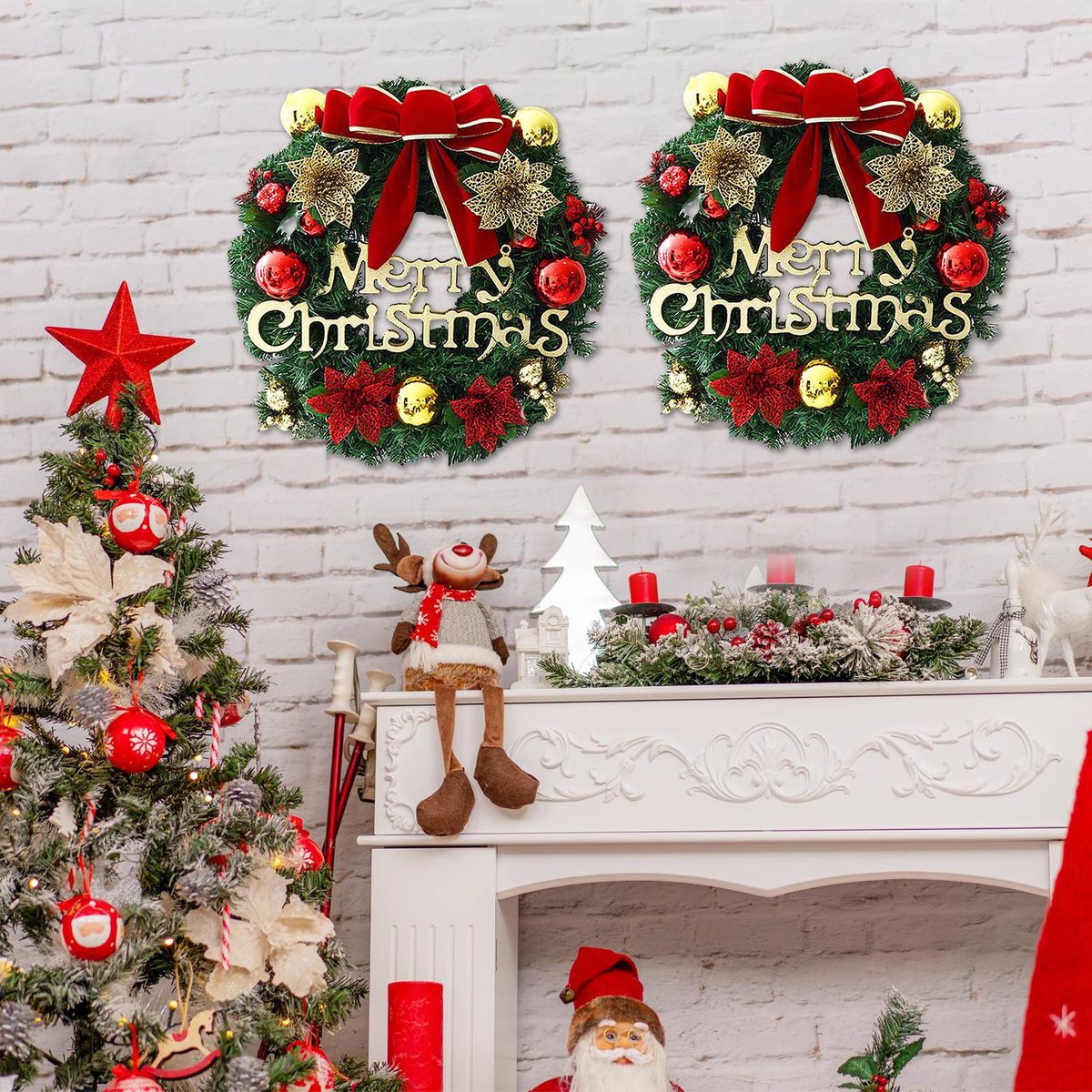 Buy Christmas Wreath With Bow Knot Fake Flowers Balls 20 Inch Merry Christmas Hanging Garland Artificial Wreath for Front Door Wall Party Decoration in Nigeria