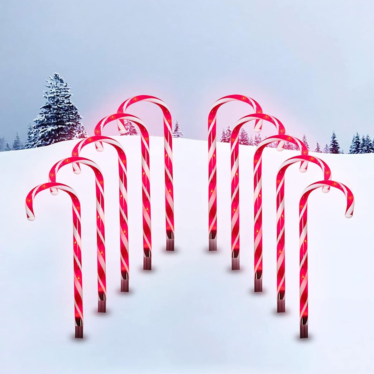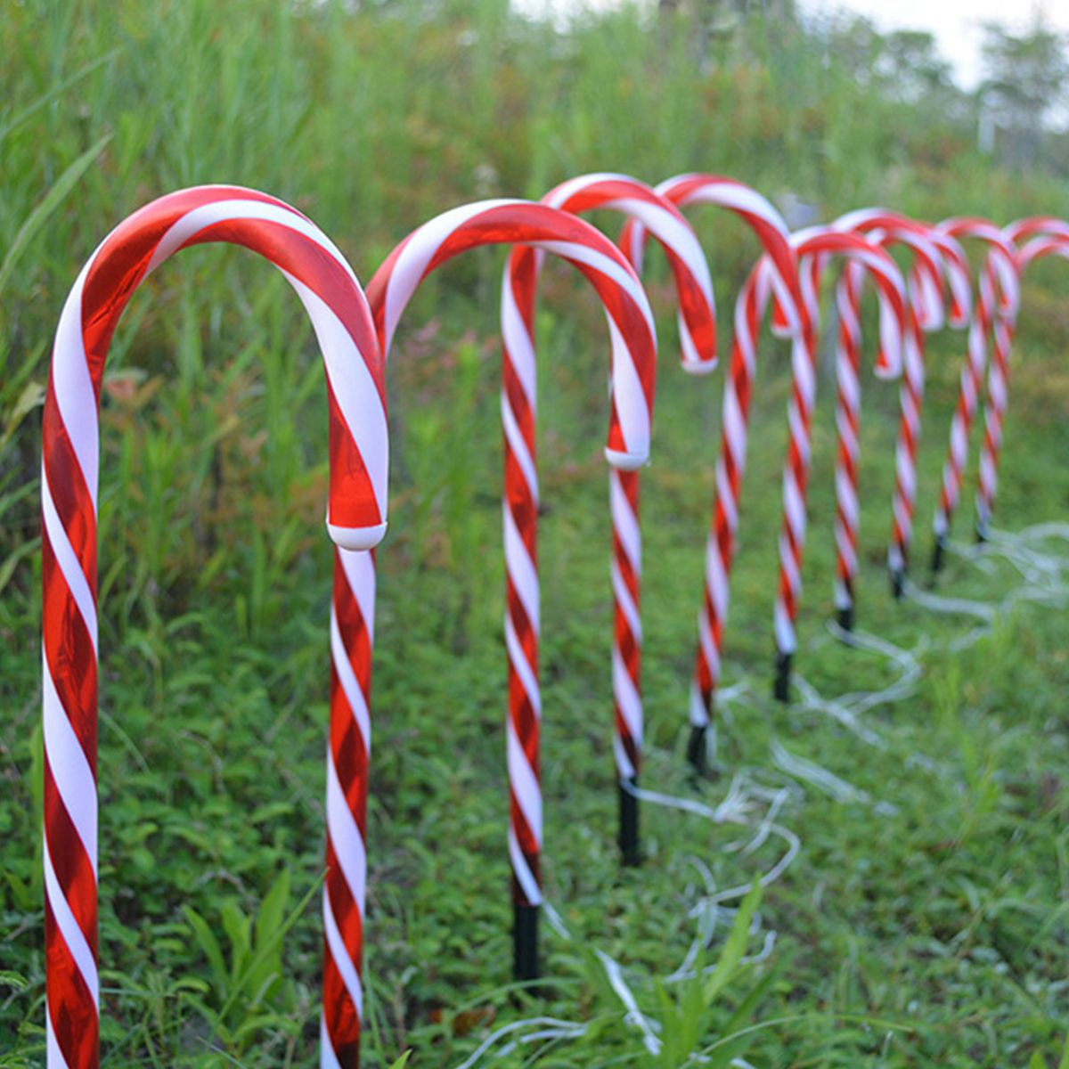 Ideal for your Christmas decorations, these 10 candy cane lights are not only beautiful but also show the way home when they are inserted in two rows on the road to form a glowing path.