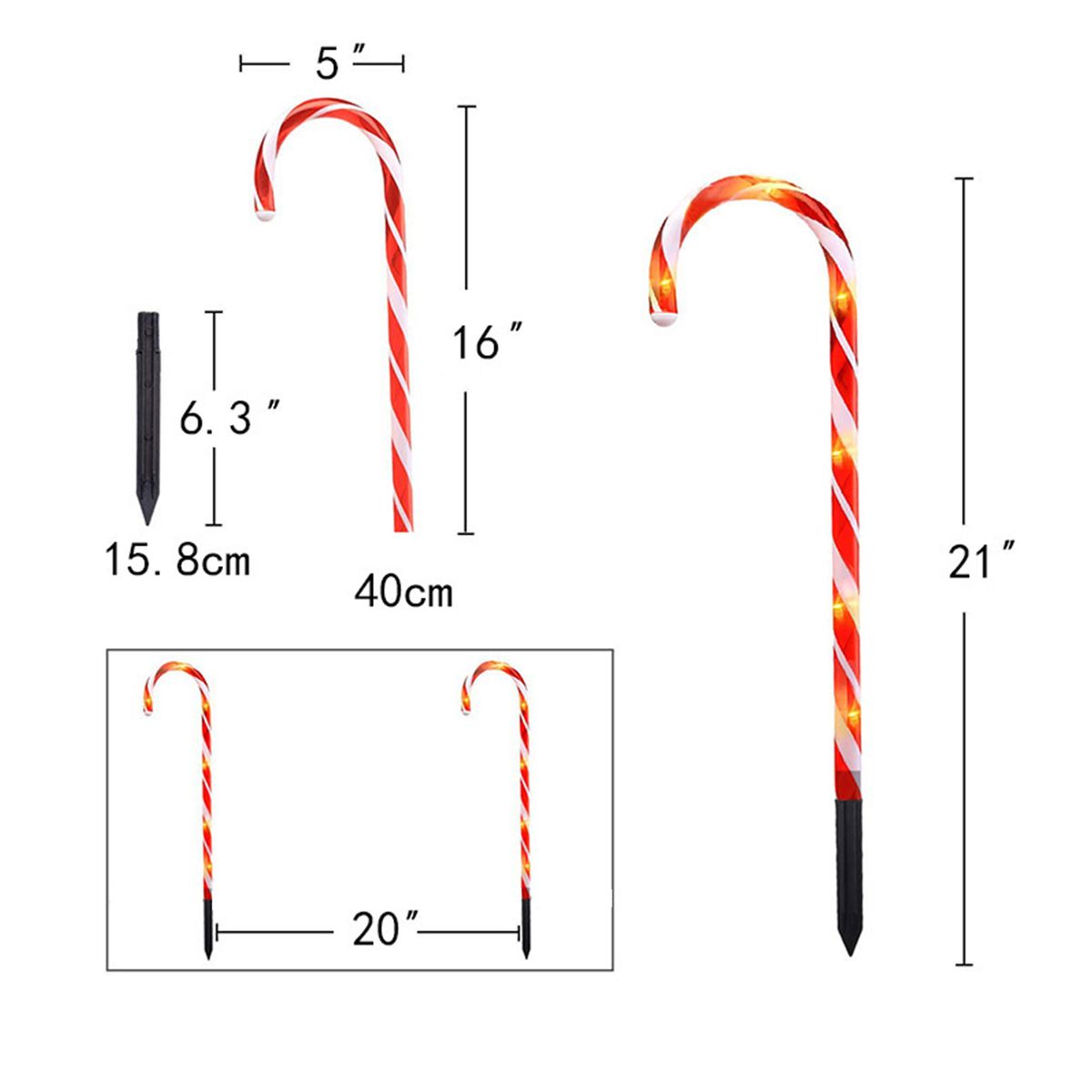 These cane lights are sturdy and easy to install, you simply insert the stakes into soft ground, you can also hang them on trees, windows, Christmas trees or walls.