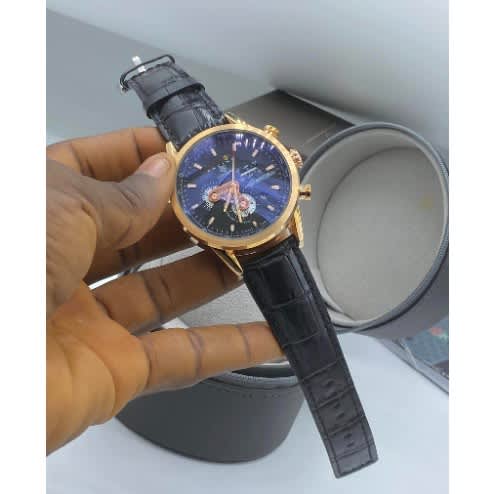 Buy Chronograph Leather Strap Black Luxury Men's Wrist Watch in Nigeria