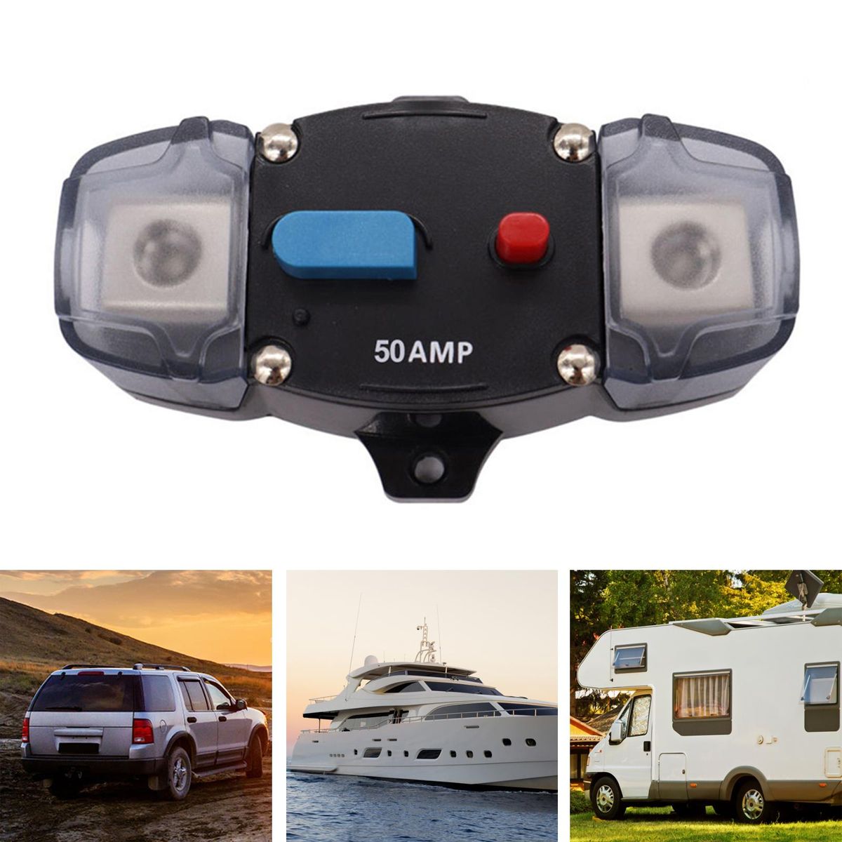 AUTOMATIC POWER OFF: When the current reaches the cut off value, the long handle will automatically cut off the power supply. Generally, it will be disconnected in the case of a short circuit. After the fault is eliminated, press the long handle back to form a path.VARIOUS CURRENTS: Circuit breaker includes 50A, 60A, 80A, 100A, 150A, 200A, 250A, 300A.To meet your different needs.PLASTIC MATERIAL: Circuit Breaker is made of plastic material, which is resistant to high temperature, corrosion and good insulation.MANUAL RESET DESIGN: Circuit Breaker with Manual Reset, the red button on the circuit breaker can be used as the main breaker switch of the circuit, and can also be used as a disconnect switch.WIDE RANGE OF APPLICATIONS: The Inline Fuse Inverter is ideal for overload or short circuit protection for automotive audio/video systems, boats, trucks, ATV winches and DC PA systems.
