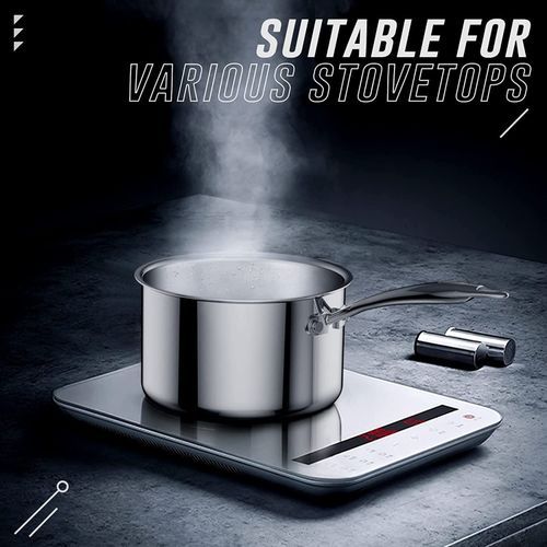 Tri-ply Stainless Steel BaseThe 3-ply premium quality base consists of two durable layers of stainless steel A thick aluminum core for fast and even heat distribution | Stay-cool HandleErgonomic stainless steel handles are dual riveted to the pans provide added stability and comfortable gripping, ensure keep cool during cooking | Dishwasher SafeThis small saucepan is perfectly safe to put into dishwasher, easy to clean It's also oven safe up to 400°F |
