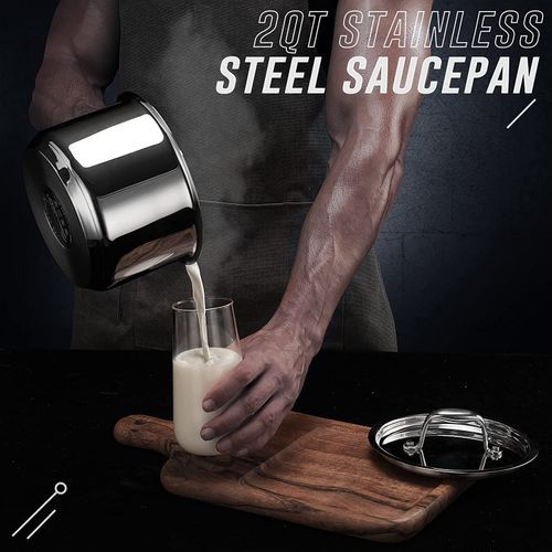 - Stainless Steel, Safe & Healthy: Ciwete stainless steel saucepan interior is made up of high-quality 18/10 stainless steel, which cooking surface does not discolor, react with food or alter flavors, ideal for healthy cooking. 2 quart sauce pan is perfect for cooking or re-heating vegetables, sauces, pasta, soup, egg or rice