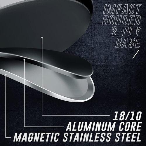 - Excellent Heat Distribution: Made of 18/10 stainless steel with the extra thick impact-bonded aluminum disc layer in the bottom between steel layers for even/quick heat distribution