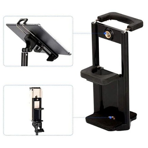Features:Hand Free & ndash; clamp on table or desk orbed and rotate any angle to free your hands3 Light Color - white, warm yellow, warm yellow + white10-Level Brightness & ndash; optimize your lighting source as best360 degree adjustable & ndash; easily rotate the swivel ball head for ideal viewingUniversal Phone Holder & ndash; works with all iPhone/Samsung smartphones up to 3.6 inch wideUSB Powered - no battery needed, long USB cable Multifunction & ndash; works both as photography ring light and table lamp, or even monolightsDurable & ndash; quality strong material for longevity and stabilityRubber Cushion Clamp - anti slip for stability and protects your desk or tableGreat replacement for phone tripodSpecifications: LED Quantity: 12 cold + 12 warm, 24 in totalLight Source Power: 12WClamp Material: Carbon SteelColor: BlackPower Supply: USB