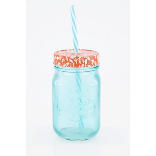 Buy Clarion Mason Jar Set With Lid & Straw 473 Ml - Blue/red in Nigeria