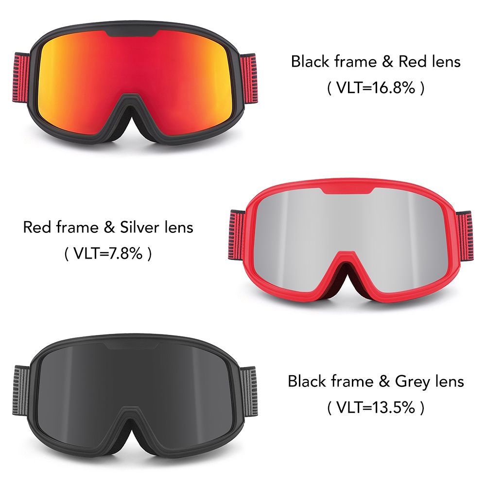 1. Fog-proof and shatterproof coated lens are designed for super clear vision and less visual interference in skiing and snowboarding and looks cool.