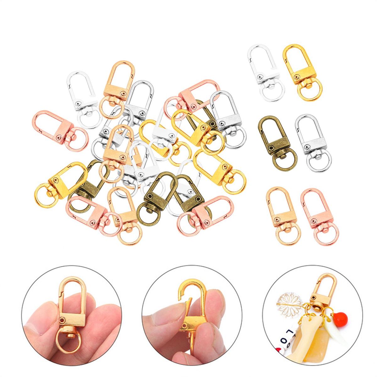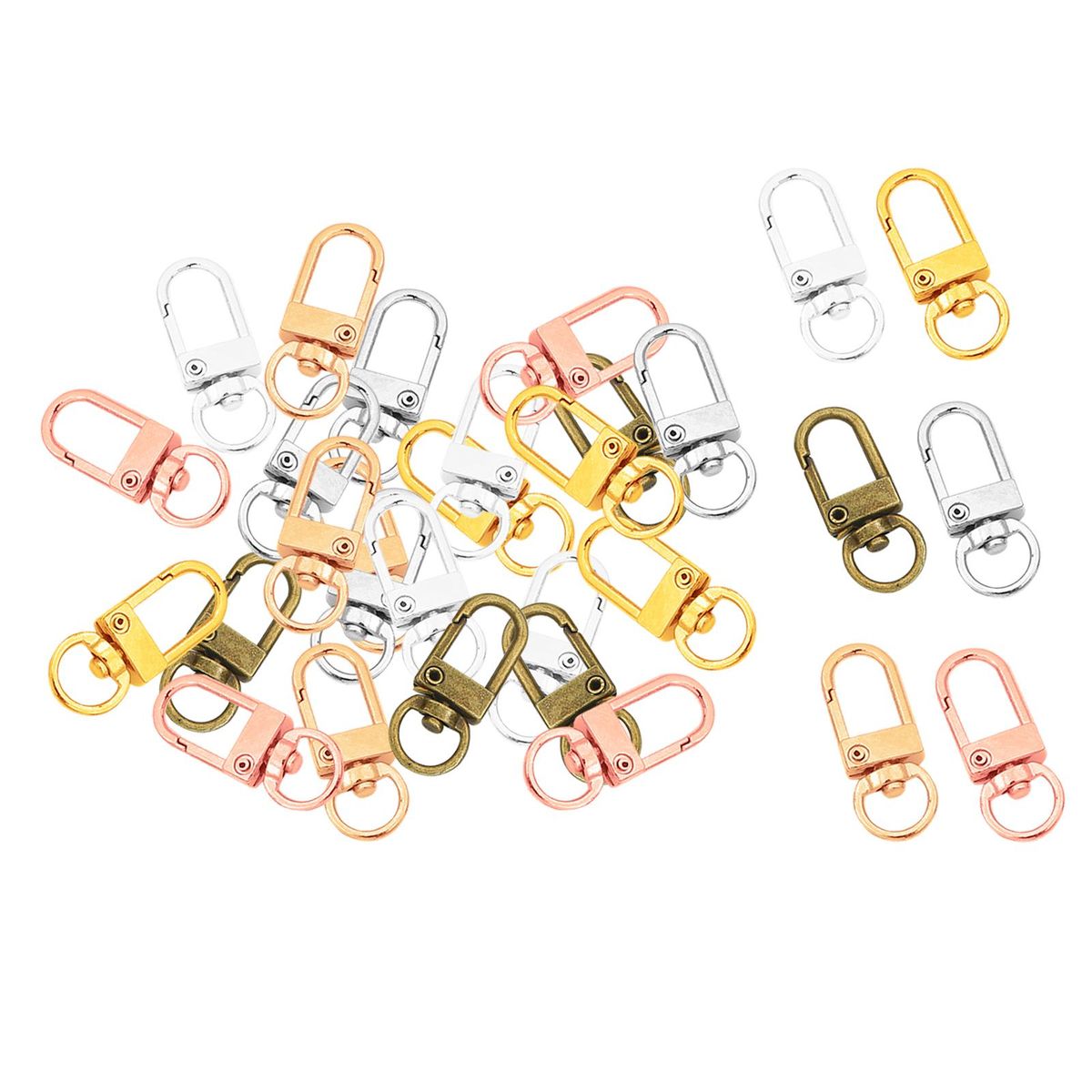 Material: The package includes key rings in a variety of colors. They are made of alloy will not rust or oxidize.Size: Small Size not too big but durable.Swivel: Equipped with full 360 degree swivel securely ensure your items won't fall out.Easy to use: Sturdy and durable, open and close smoothly. Swivel clamp opening makes using clips easy and holds a tight grip.Widely Used: These metal swivel hooks are applicable to your backpack, handbag, purse, bracelet, necklace, sweater chain and more, or serve as a eye catching elements on your DIY jewelry.