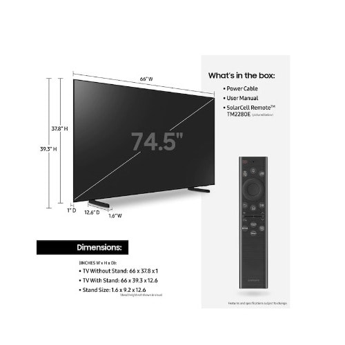 - 75" Resolution 3,840 x 2,160