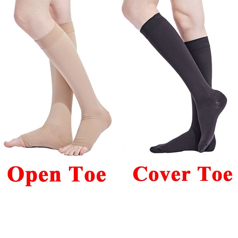 Quality Control: Medical Grade, Quality GuaranteedPressure Level: Therapeutic Class Two, Pressure 23-32MMHGGender: UnisexSeason: All SeasonsStyle: Open Toe / Cover ToePackage includes: Compression Socks*1 Pair