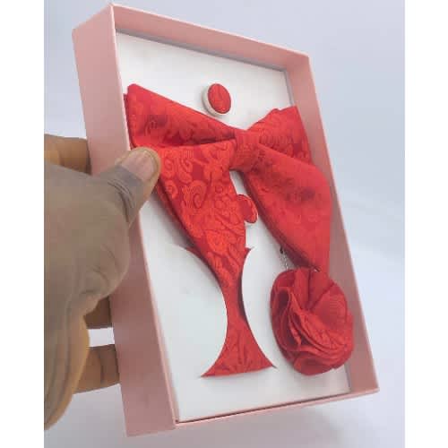 Buy Classic 4-in-1 Luxury Pattern Cotton Red Bow Tie Set in Nigeria