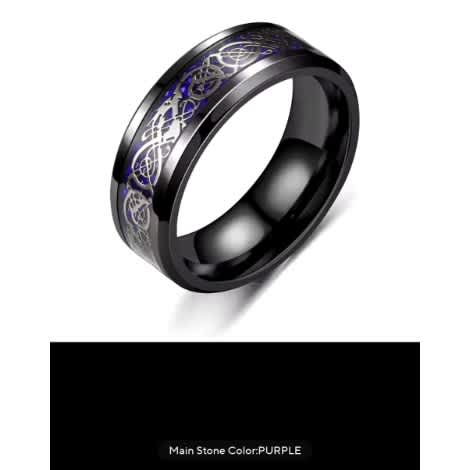 The Classic 8mm Black Tungsten Wedding Celtic Dragon Ring is a striking blend of tradition and contemporary design, created for men who appreciate both elegance and individuality. This finely crafted ring is made from durable black tungsten carbide, known for its strength and scratch resistance. The golden Celtic dragon motif, a symbol of power and heritage, is beautifully complemented by a vivid purple carbon fiber inlay that adds a modern and unique flair.
