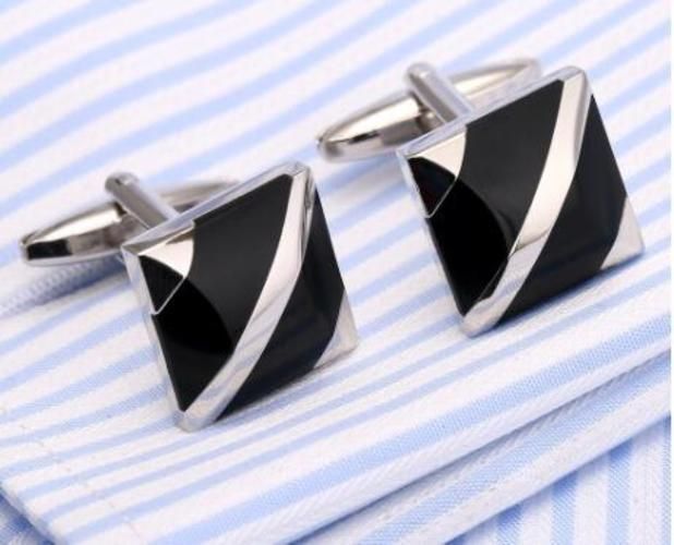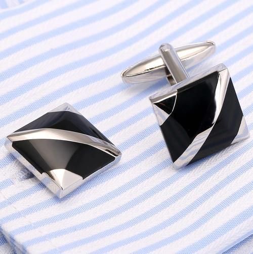 Classic Black/White Onyx Cufflinks Cat's Eye Stone Inlaid Shirt Cuff Links Men's Jewelry Accessory -Tie Clips & Cufflinks