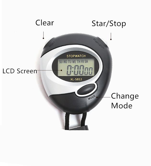 Made from high quality ABS materialSingle channel memory1/100 second accuracyDay, time displayWith alarm clock