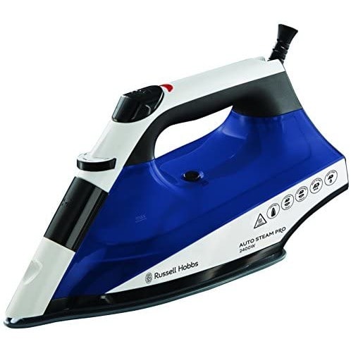Take the hassle out of working through your ironing pile with the Russell Hobbs Auto Steam Iron. Featuring automatic steam generation, the iron makes it simple to tackle even the most stubborn creases with 45g per minute of continuous steam and 120g shot of steam softening wrinkles, resulting in a smooth finish each and every time. The irons specially designed non-stick soleplate effortlessly glides over fabrics while a vertical steam function lets you tackle creases on hanging items making it ideal for jackets, suits and even curtains. A large 320ml easy to fill transparent water tank gives you plenty of ironing time between refills and a comfort grip handle and temperature dial ensures comfort during use. The iron even features an anti-drip and self-cleaning function to keep maintenance to a minimum