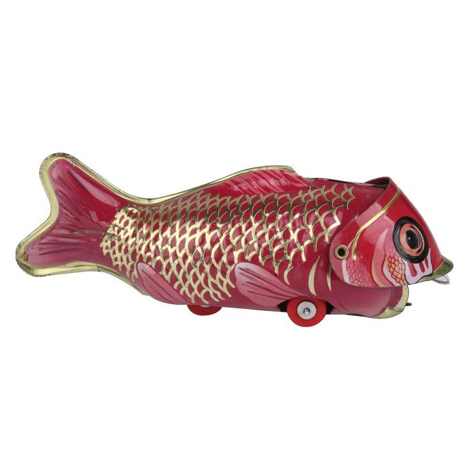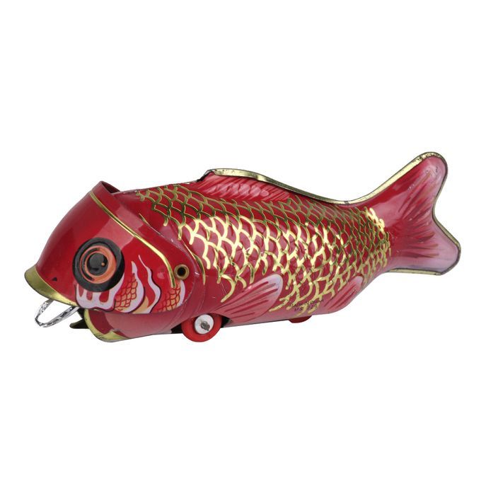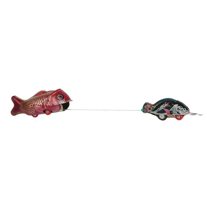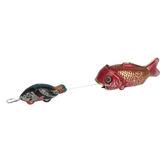 Delicate handmade tin toy, red big fish and black small fish