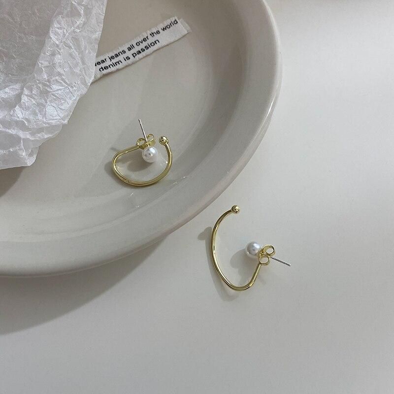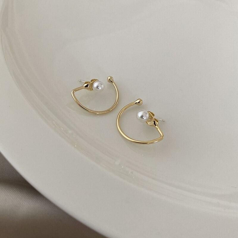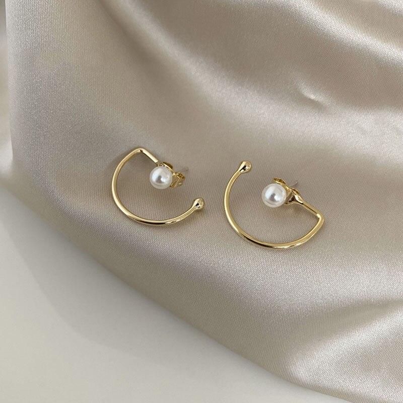 Buy Classic Gold Color Geometric Stud Earrings Imitation Pearl Ear Stud for Women Elegant Jewelry in Nigeria