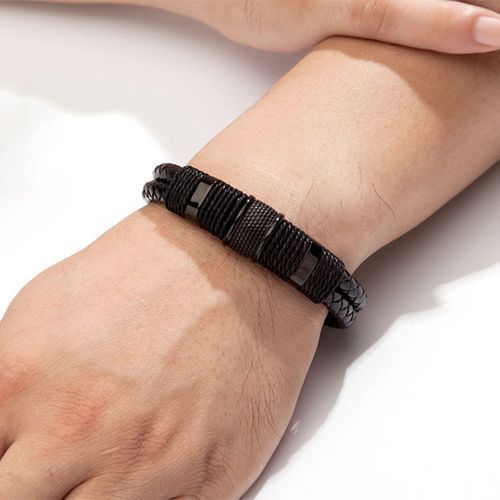 Genuine leather Bracelet Men Stainless Steel Leather Hand