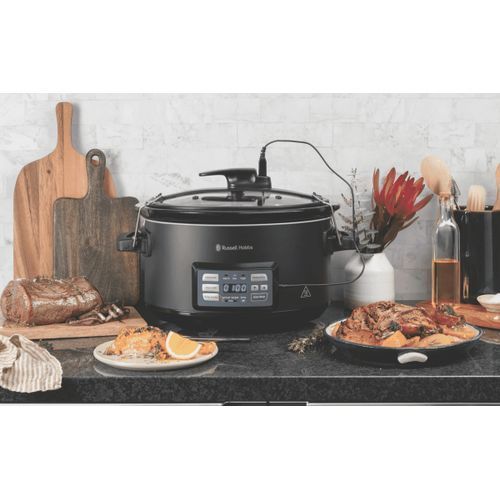 Do you want to cook flavoursome food for the family that's always cooked to perfection? Then we're here to introduce you to the professional chefs' cooking secret, sous vide. With the Russell Hobbs Sous Vide Slow Cooker, we're letting you experience the very best of cooking, giving you the freedom to cook in 3 different ways, all with this one appliance. Enjoy a slow cooked mid-week casserole, a tender Sunday roast chicken using the Temperature Probe, or the perfect Friday night fillet steak cooked sous vide. Whether you're whipping up every day family favourites or entertaining your fellow foodies at a get-together, the Russell Hobbs Sous Vide Slow Cooker helps keep your prepping and cooking time low. With the Russell Hobbs Sous Vide Slow Cooker, we're letting you experience the very best of cooking, giving you the freedom to cook in 3 different ways, all with this one appliance. Slow Cooking Ready to be used as a classic slow cooker, you can cook hearty home-cooked favourites from chicken curries and beef stews to your favourite chilli or even pulled pork. Simply add in your ingredients, set to your desired settings and you're ready to go. Sous Vide Sous-vide is a French term meaning “under vacuum”. It's a method of cooking food inside a sealed pouch, in a water bath, at an accurately regulated temperature. Sealing the food in pouches retains the juices and subtle flavours that would otherwise be lost during conventional cooking. A style of cooking that's guaranteed to impress your guests. Temperature Probe Whether you're cooking a juicy roast chicken or a tender joint of beef to medium rare, the Temperature Probe makes sure it's cooked to perfection