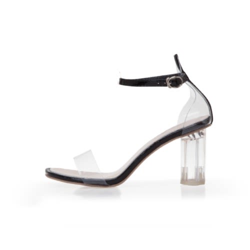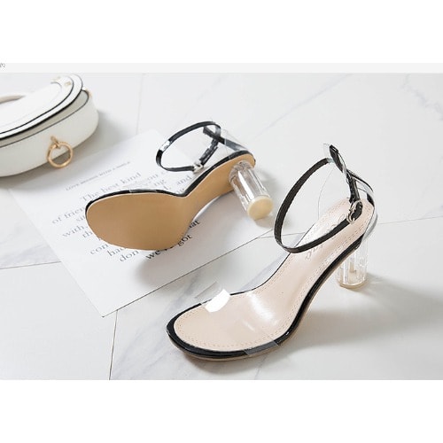 Buy Classic Transparent Low Block Heel Wedge Buckle Sandals -black in Nigeria