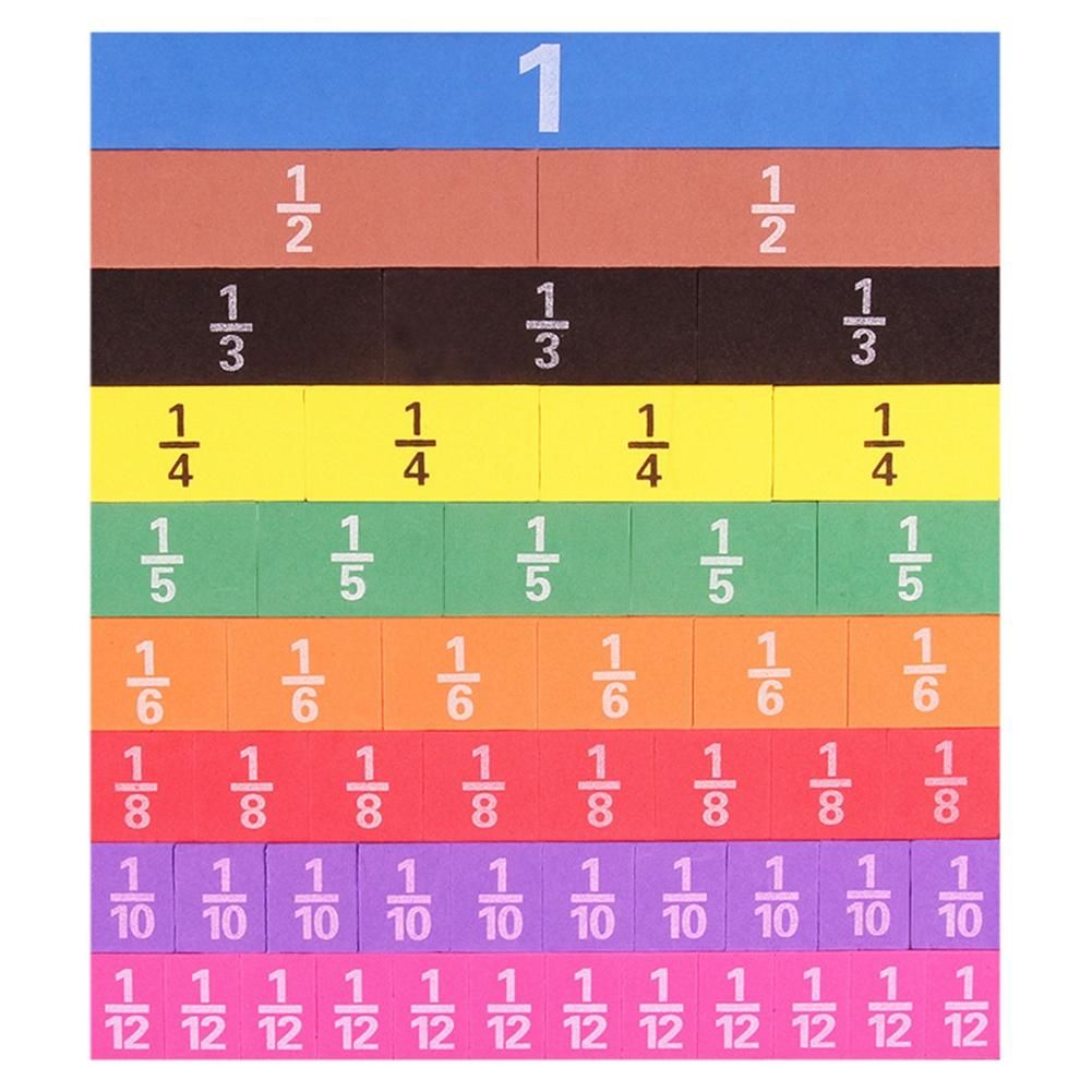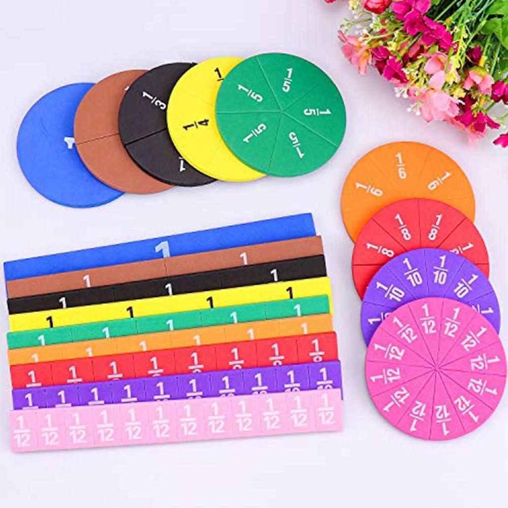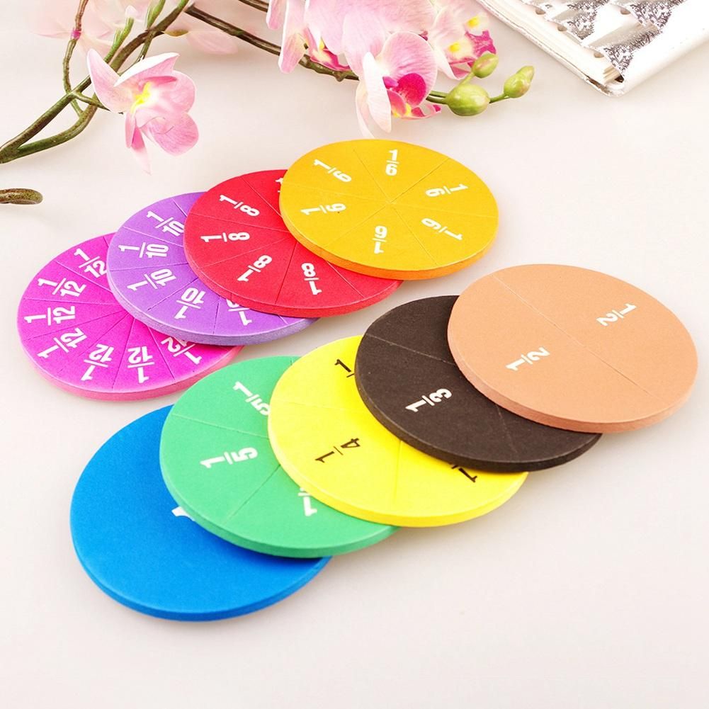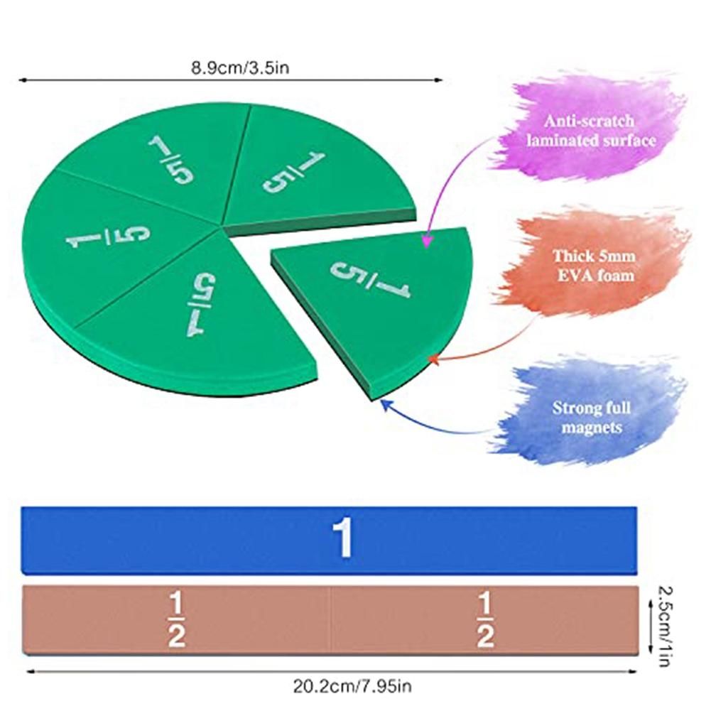 The package includes: 9 magnetic fractional blocks (1 whole block, 1/2, 1/3, 1/4, 1/5, 1/6, 1/8, 1/10 and 1/12) and 9 Magnetic fraction circle (1 integer, 1/2, 1/3, 1/4, 1/5, 1/6, 1/8, 1/1/1/1/1/1/1/1/1/1 / 1/ 1/8. 0, 1/1. 2 values), a total of 102 magnetic segments, 9 colors of numbers.