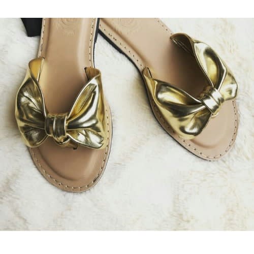 Michael Kors Metallic Logo T-Strap Slippers (cream) U.K. Size 7