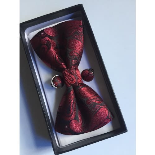 4-in-1 Classic Pattern Men's Red Bow Tie N Cufflinks