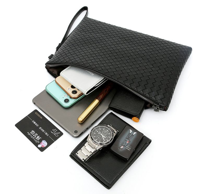 - This clutch bag is perfect for business men. Wrist strap available, make your wallet and belongings safer. Easily to carry all your daily stuffs and staff for travel such as passport, postage stamps, medical and car insurance, cards, etc.