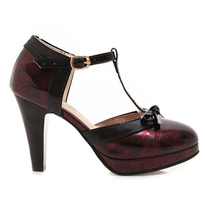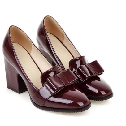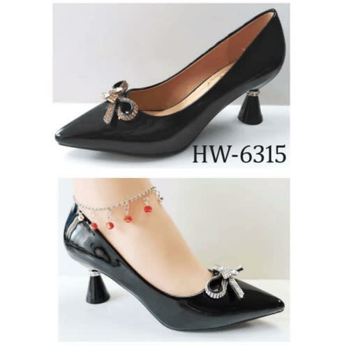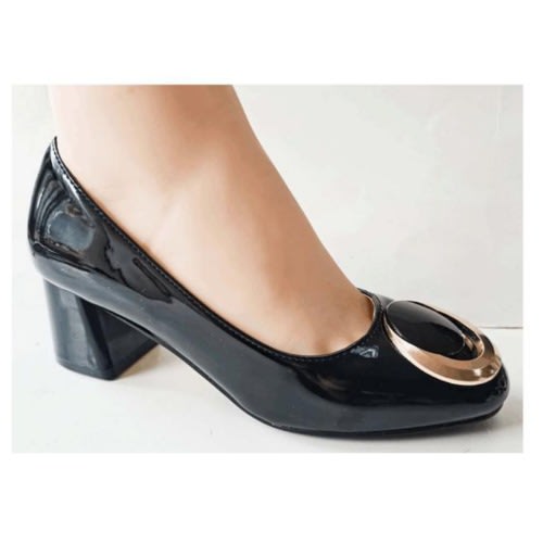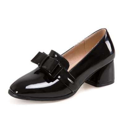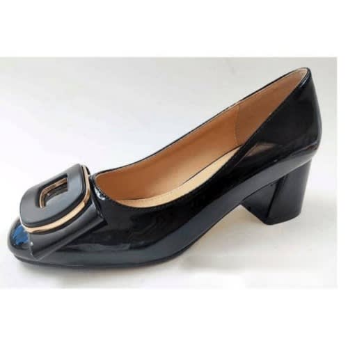 The shoe has a top accessories designed with a conination of patent leather and Pearl