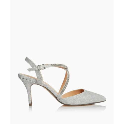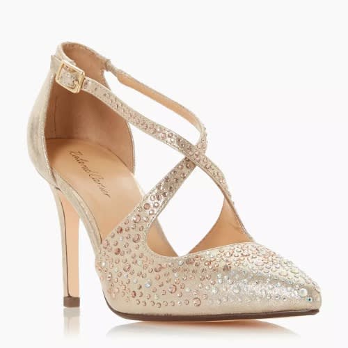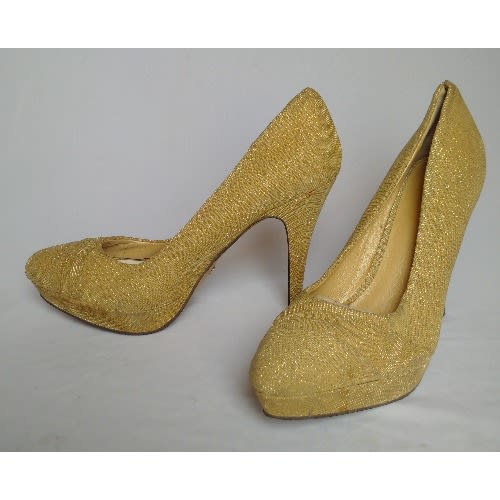 Heel comes in gold or metallic